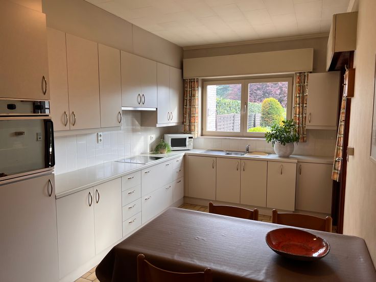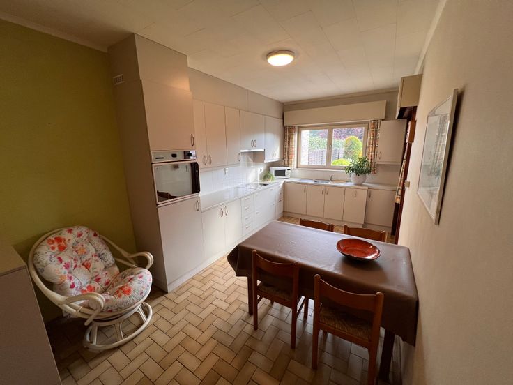 Ben je op zoek naar een degelijke gezinswoning die je naar eigen smaak kan opfrissen? Dan is deze halfopen bebouwing met ruime tuin, vrijstaande garage en uniek bosperceel misschien wel jouw droomhuis. Gelegen op wandelafstand van scholen, winkels, openbaar vervoer én met vlotte verbinding naar de belangrijkste invalswegen, combineert deze woning een centrale ligging met rust en groen. De woning is goed onderhouden en straalt een solide, structurele kwaliteit uit. Ze is volledig onderkelderd en voorzien van rolluiken. Je betreedt de woning via een verzorgde voortuin met oprit die uitkomt bij de ruime garage. Binnen wacht een praktische indeling: een inkomhal met gastentoilet, toegang tot een bureau, een droge en ruime kelder, en de gezellige L-vormige leefruimte. Dankzij de grote zuidgerichte raampartijen baadt deze in natuurlijk licht. De houtkachel voegt extra sfeer toe aan de zit- en eethoek. Aansluitend vind je de keuken met veel opbergruimte en zicht op de groene tuin. In de veranda geniet je van de eerste zonnestralen in het voorjaar. Op de eerste verdieping zijn er vier slaapkamers, een knusse badkamer en een apart toilet. De zolder is bereikbaar via een luik op de overloop en biedt extra bergruimte. De tuin is een echt pluspunt: hier vind je een recente serre, fruitbomen, een praktische tuinberging en toegang tot een aanpalend bosperceel (1137m²) dat optioneel kan worden bijgekocht. Voor info of een bezoek: 0479 32 23 70 (geen immo) of katrien.debosschere@telenet.be.