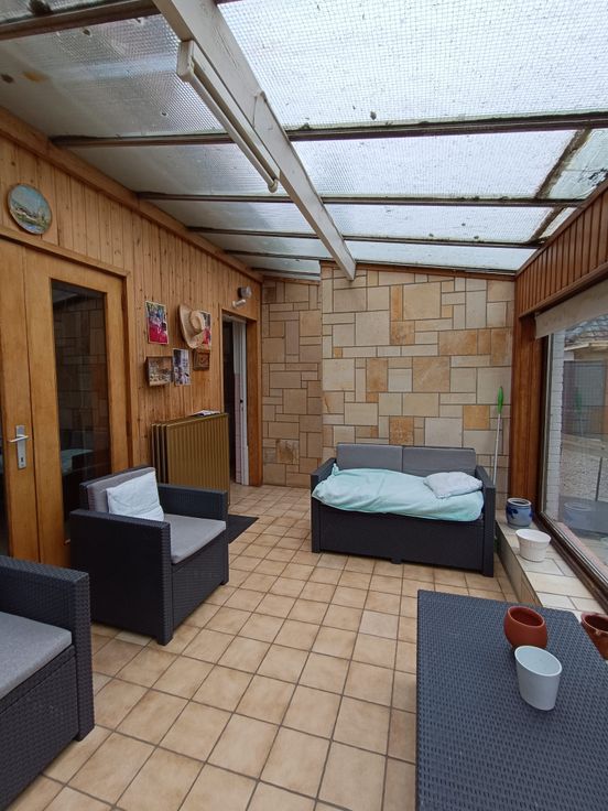 De woning heeft een bewoonbare breedte van 6,8 meter en een diepte van 10,3 meter, inclusief de veranda. Op het gelijkvloers bevindt zich een inkomhal, een afzonderlijk gastentoilet, een lichtrijke leefruimte, een aparte keuken en een aangebouwde veranda met zicht op de tuin. Verder is er een droge kelder, ideaal voor extra opslag.