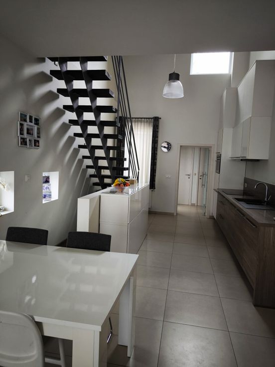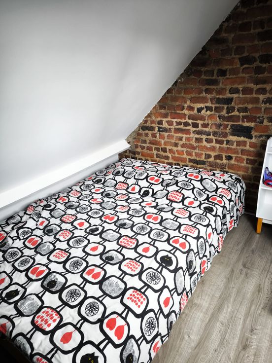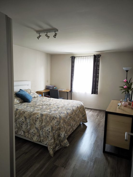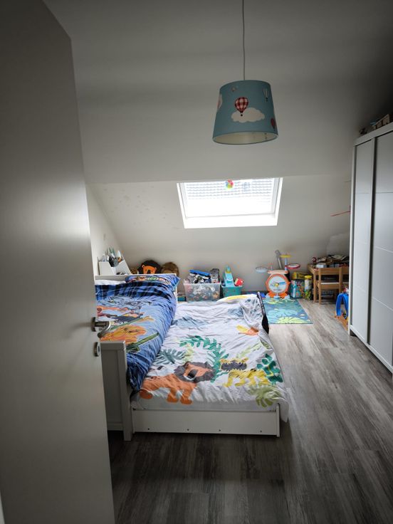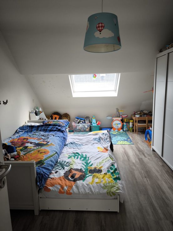 Au rez-de-chaussée vous trouvez une cuisine équipée, salon et salle a manger, une petite toilette et un débarras. Au première étage se trouve une grande chambre de 15m2, au troisième étage une salle de douche et une deuxième chambre de 17m2. Au grenier une troisième chambre aménagé avec toiture isolé.