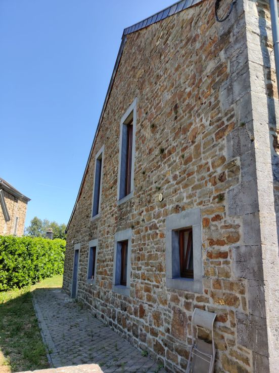 Charmante maison de caractère, 3 façades au centre de Harre. (Proximité de l'E25) Jardin, terrasse, parking. Dépendance de jardin.