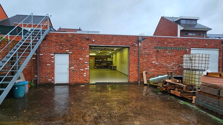- Het magazijn is bereikbaar via een servitudeweg aan de achterzijde van het gebouw, aparte ingang en elektrische sectionaalpoort.