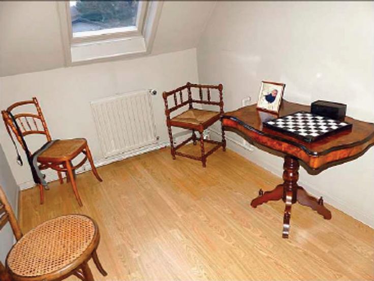 Bovenverdieping: Grote slaapkamer, op te frissen badkamer met 2 lavabomeubels, combinate bad/douche, bergruimte/chauffage met (nieuwe) Viessman hoogrendementsketel, bureauruimte, 2e slaapkamer, WC, bergruimte.