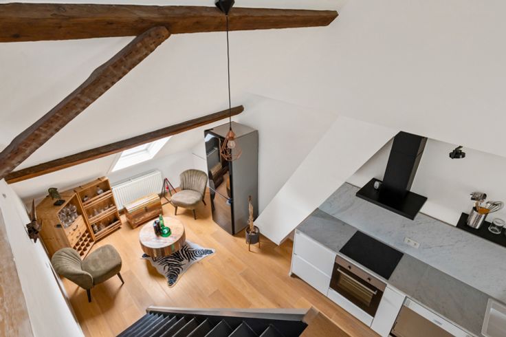 In het bruisende centrum van Aartselaar, achter een charmante gevel met authentieke elementen, vindt u dit stijlvolle dakappartement in een volledig gerenoveerd gebouw met slechts drie wooneenheden. Gelegen op de bovenste verdieping combineert deze unieke woning het karakter van een klassiek pand met het comfort en de uitstraling van een modern interieur. Het appartement beschikt over een lichtrijke leefruimte met open keuken, één ruime slaapkamer en een mezzaninekamer die perfect dienst kan doen als bureau, hobbyruimte of logeerkamer. Het absolute pronkstuk is het zonnige dakterras, waar u in alle rust kan genieten van een prachtig uitzicht over de omgeving — een zeldzame troef in het centrum! Dankzij de recente totaalrenovatie geniet u van een gunstig EPC-label B (161 kWh/m²), wat garant staat voor energiezuinig wonen zonder in te boeten op comfort. Deze woonst is ideaal voor jonge koppels of alleenstaanden die houden van een moderne woonstijl, op een levendige locatie met alle voorzieningen op wandelafstand. Bovendien zijn de verbindingen naar de A12 en E19 bijzonder vlot, wat dit appartement ook interessant maakt voor pendelaars richting Antwerpen of Brussel. Troeven op een rij: Instapklaar dakappartement in kleinschalig gebouw Gelegen in het centrum, achter authentieke gevel Zonnig en ruim dakterras 1 slaapkamer + mezzaninekamer EPC-label B: energiezuinig Uitstekende bereikbaarheid (A12/E19) Een unieke kans om stijlvol en comfortabel te wonen in het hart van A