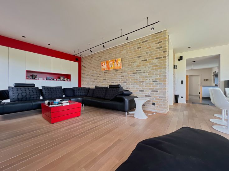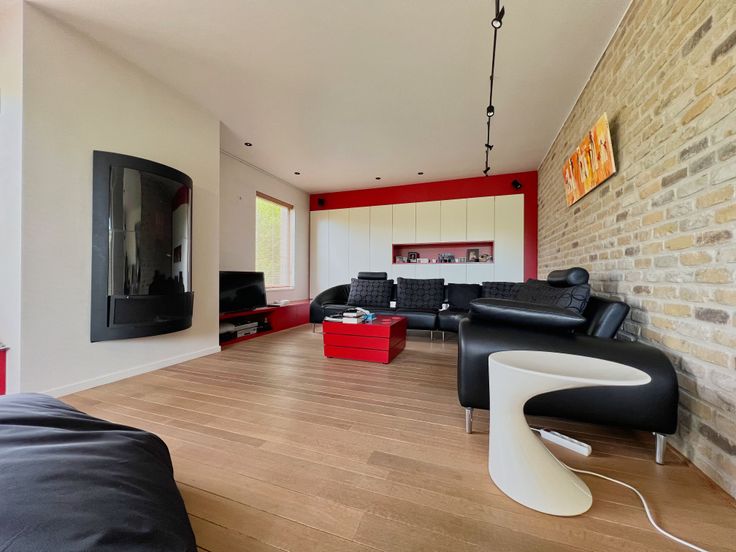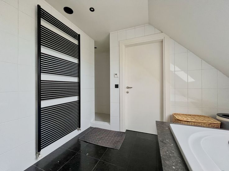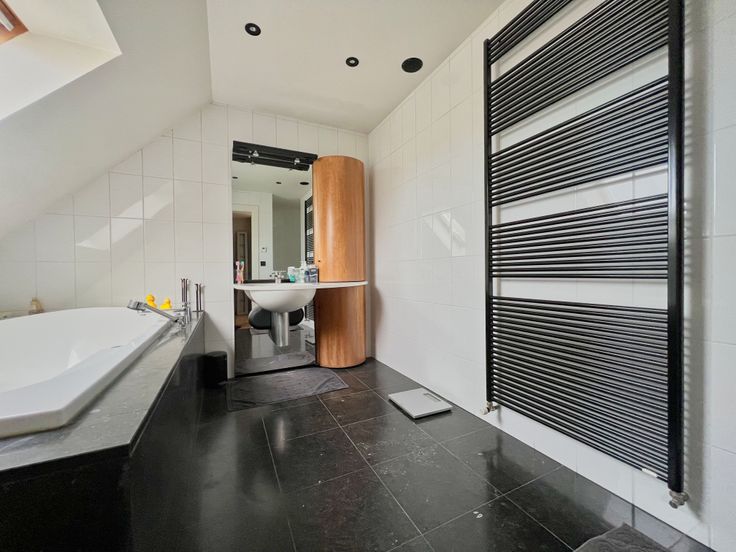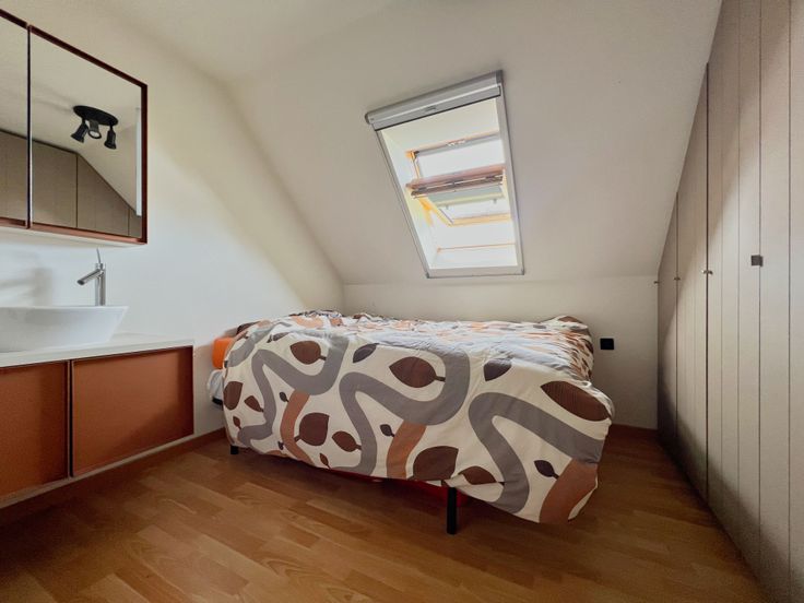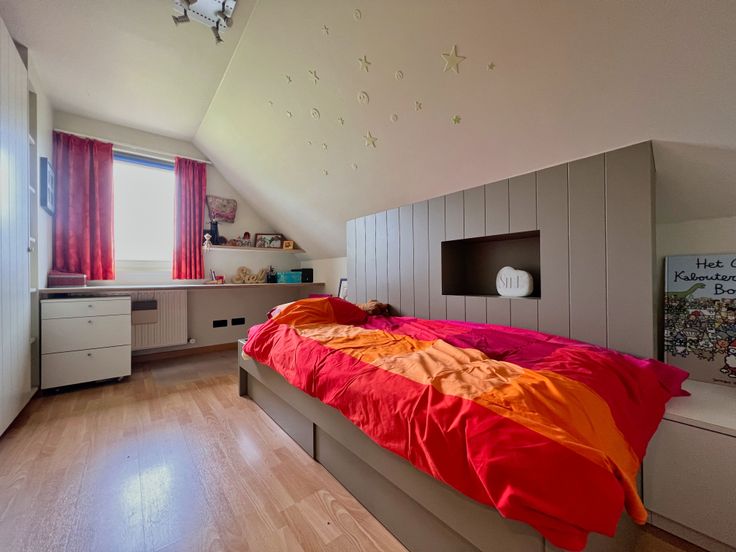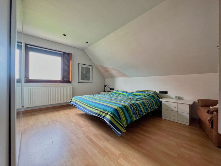 Via de vaste trap in de leefruimte, bereiken we het eerste verdiep. De eerste verdieping bestaat uit een hall met ingemaakte kasten, 4 volwaardige slaapkamers (waarvan 3 met ingemaakte kasten!) én een ingerichte badkamer (inloopdouche, lavabomeubel, ligbad met water-en luchtjets) + apart toilet. Tevens biedt het eerste verdiep toegang tot het zolderverdiep, via een valtrap.