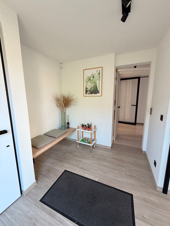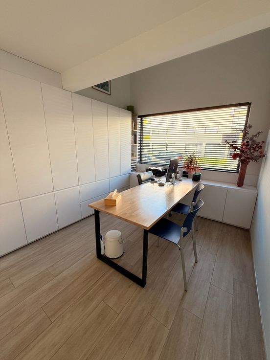 Een grote troef is de afzonderlijke praktijkruimte met eigen inkom, wachtruimte en toilet. Deze is volledig afsluitbaar van het privé-gedeelte en rolstoeltoegankelijk, ideaal voor een vrij beroep of thuiswerk.