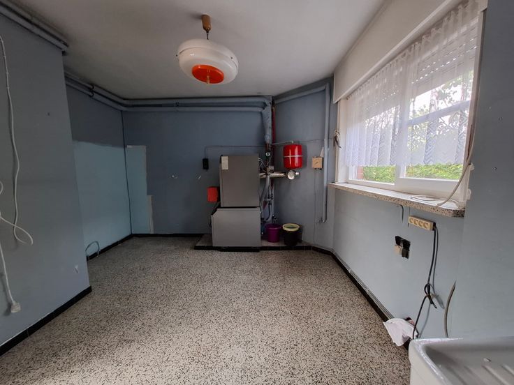 Gelijkvloers; inkomhal met trap, grote living, lichtrijke keuken met toegang tot een droge, praktische kelder, een kamer waar CV ketel staat en waar veel ruimte is voor een wasmachine, droogkast, diepvriezer en nog veel meer, een inkom achteraan, toilet en een multifunctionele kamer van 14 m² dat dienst kan doen als slaapkamer, berging, bureau of een ruimte voor het uitoefenen van een zelfstandige activiteit.