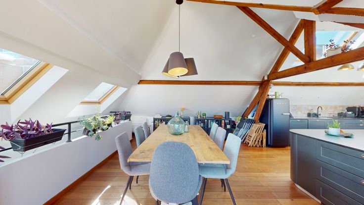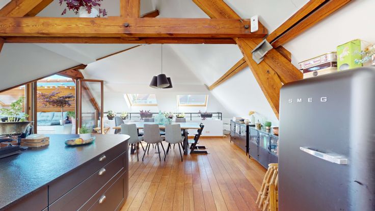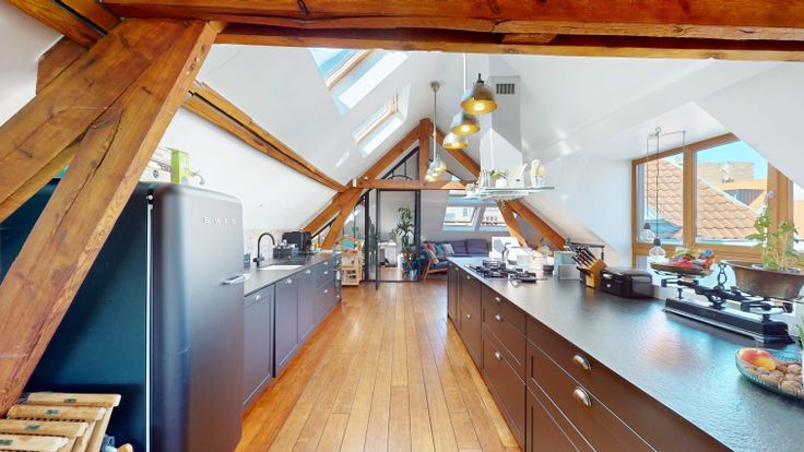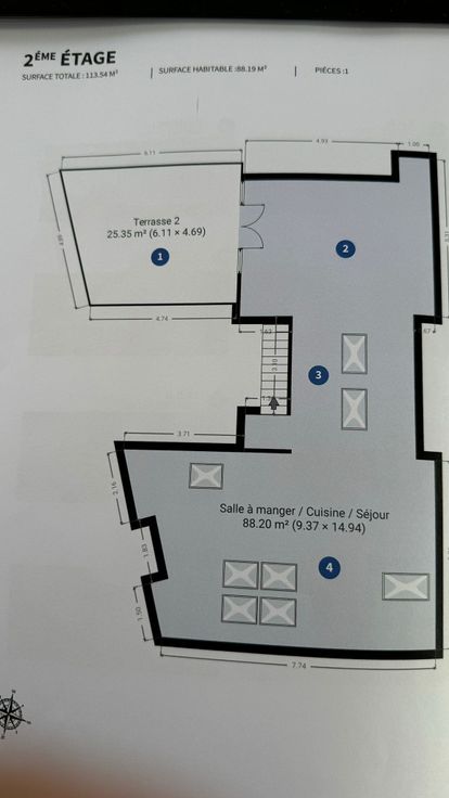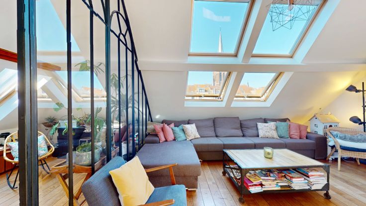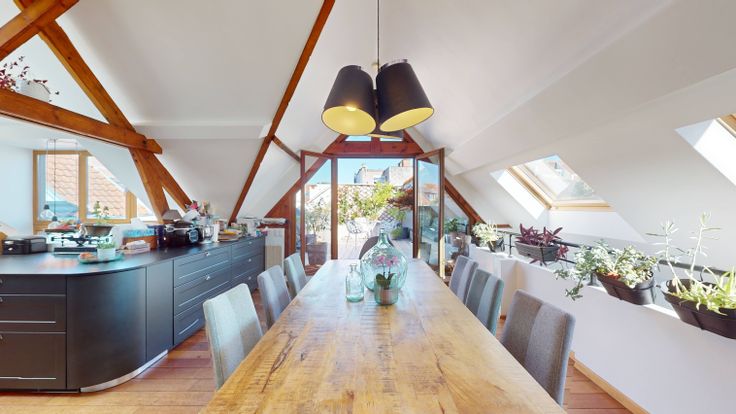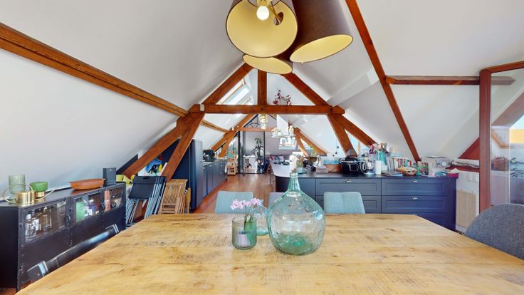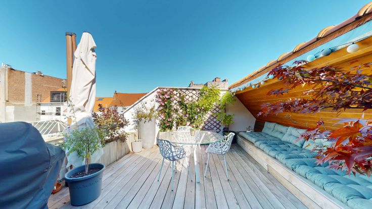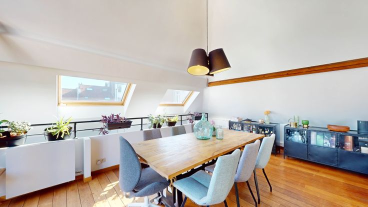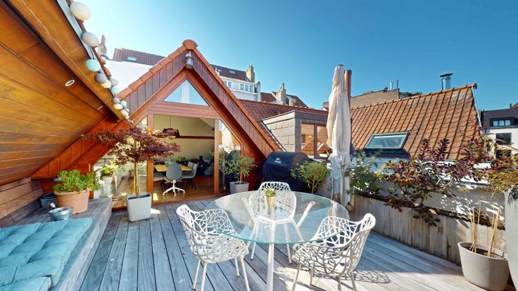 Au 2ème, espace ouvert très lumineux de +/- 90M2 comprenant la salle a manger, la cuisine et le salon. La cuisine est entièrement équipée. La salle a manger donne sur une superbe terrasse de 24M2.