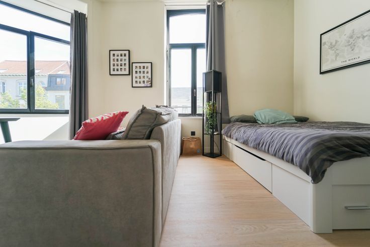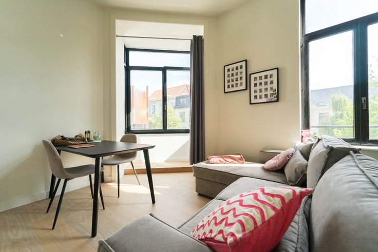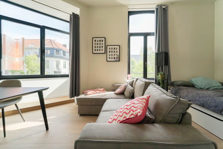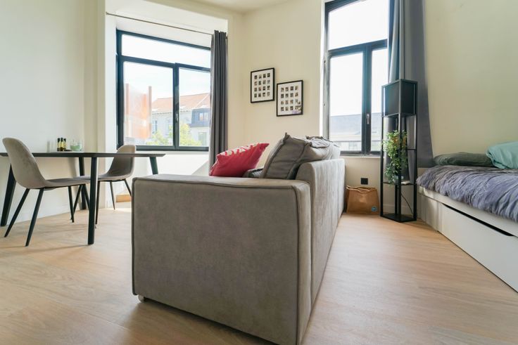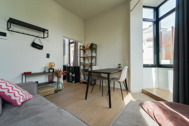 Deze gerenoveerde studio is gelegen op de eerste verdieping in een statig hoekgebouw (Ottogracht - Baudelostraat) nabij de Vrijdagsmarkt. Het bestaat uit een keuken, living met slaapruimte, aparte badkamer met toilet. De studio wordt verwarmd via warmtepomp (zeer energiezuinig) en bevat dus ook airco voor in de zomer. Dak werd geïsoleerd. Elektriciteit conform. Aansluiting wasmachine aanwezig. Er dient een provisie voor water betaald te worden (€ 25/maand). vrij vanaf 1 juni 2025. Gemeenschappelijke kosten 60 €/maand.