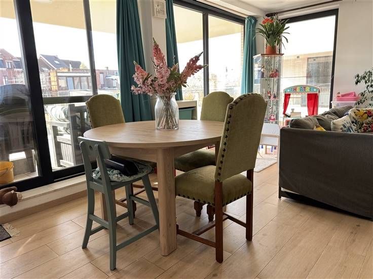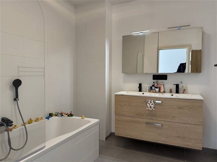 Dit modern recent appartement in Mechelen biedt een comfortabele en stijlvolle woonervaring. Met een bewoonbare oppervlakte van 94m² geniet u van een ruim en licht interieur, ideaal voor gezinnen of koppels. Het appartement beschikt over twee ruime slaapkamers en een moderne badkamer die voorzien is van alle comfort. De open keuken is volledig uitgerust en vormt een centraal punt in de leefruimte, perfect voor gezellige avonden en etentjes. De grote ramen laten overvloedig natuurlijk licht binnenstromen en bieden toegang tot een ruim zonneterras(20m²), waar u heerlijk kunt ontspannen en genieten van de frisse buitenlucht. Verder beschikt het appartement over een wasplaats en apart WC. De autostaanplaats (=+25.000euro) is verplicht bij aan te kopen.