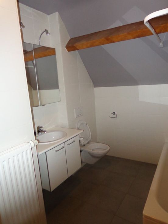 Comprenant : un hall, un W.C. séparé, une cuisine super équipée, un living, une chambre, une salle de douche, un escalier. Au niveau supérieur : une deuxième chambre ouverte sur le living, un coin rangement, une salle de bain, une petite buanderie avec une chaudière murale gaz à condensation Viessmann, un espace machine à laver, séchoir à condensation.