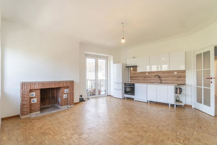 Situé face aux Étangs d'Ixelles et à deux pas de la place Flagey, TRIOR Louise vous propose ce magnifique appartement de 100m². Situé au 4e étage/5 d'un bel immeuble AVEC ascenseur. Il se compose comme suit : hall d'entrée desservant un séjour (26m²) avec une cuisine super-équipée et petit balcon, un hall de nuit desservant deux chambres (13 et 16m²), une salle de douche (lavabo, douche et emplacement machine à laver), une toilette séparée ainsi qu'un débarras avec balcon arrière. DIVERS : Climatisation, porte blindée, parlophone, double vitrage, entrée sécurisée,... Charges : 150€ de provision pour les communs ainsi que le chauffage. Disponible le 01/05/2025. Une visite ? Appelez-nous ! (Les visites ne peuvent être planifiées que par téléphone). Descriptif complet sur www.TRIOR.be