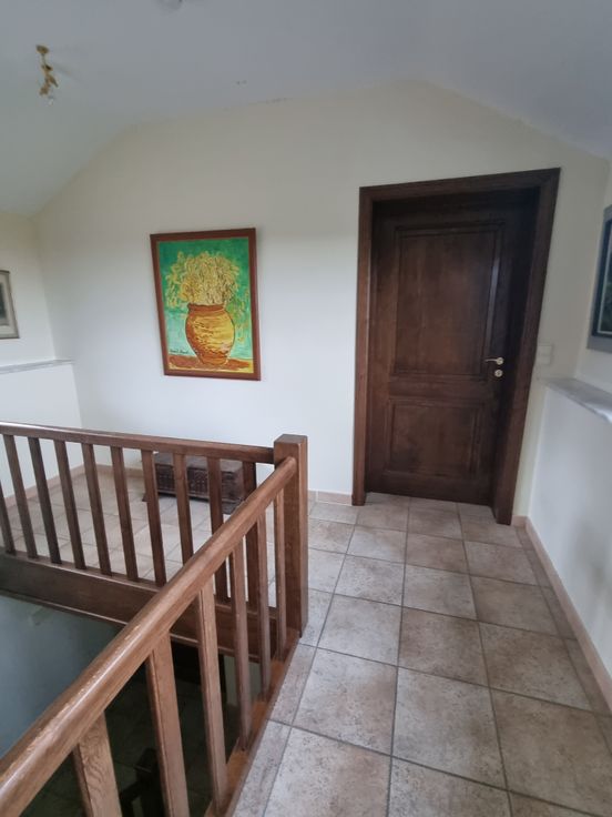 acces indépendant et grand hall d entrée/ grande cuisine équipée/ salon avec terrasse en balcon/hall de nuit/WC indépendant/1 grande chambre avec sdb privatives/1°etage 1 ch mansardée .