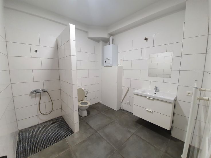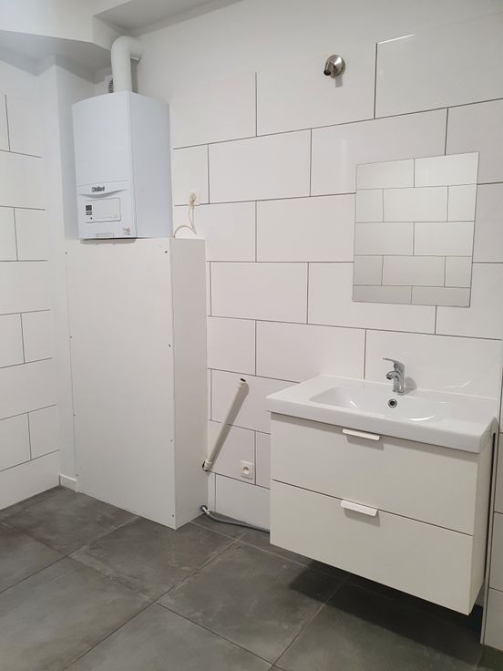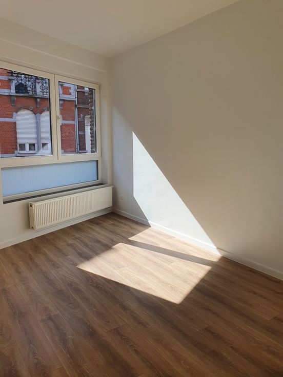Appartement 1ch de 70m² habitable récemment rénové situé au rez de chaussée d'une maison avec une cour/terrasse privative de +-45m². L'appartement se compose de : un hall d'entrée, une chambre lumineuse avec volet électrique, 1 petit débarras, une salle de douche carrelée (douche, wc, évier simple + radiateur porte serviette, 1 chaudière gaz individuelle), une cuisine équipée( évier simple, cuisinière électrique avec four et taques, hotte) ouverte sur un spacieux salon donnant accès directement à la cour/terrasse + une remise dans le fond.