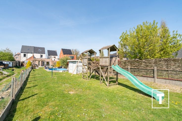 Instapklare gezinswoning met ruime tuin die uitkomt op een achterliggende straat. Ontdek deze prachtig gerenoveerde rijwoning op toplocatie te Wetteren, met een vlotte bereikbaarheid en op wandelafstand van het Frunpark. Deze energiezuinige woning combineert comfort, ruimte en stijl – ideaal voor gezinnen die houden van rust, bereikbaarheid én een plek om te werken van thuis uit. De woning werd recent volledig gerenoveerd, inclusief een vernieuwd dak . Binnenin geniet je van een moderne afwerking met een ruime en lichtrijke leefruimte, een volledig uitgeruste keuken en een grote, stijlvolle badkamer. Er zijn maar liefst 3 slaapkamers, een extra overloopkamer (ideaal als hobbyruimte of speelkamer), én een aparte bureauruimte – perfect voor thuiswerk of een stille studeerplek. Verder zijn er 2 aparte toiletten en een praktische kelder. De echte troef? De indrukwekkende tuin van maar liefst 710 m² – een groene oase waar je volledig tot rust komt. Bovendien is er een zelf aangelegd zwembad aanwezig, perfect voor zomerse ontspanning. De tuin is ook bereikbaar via de achterzijde, wat extra gemak biedt. Voor het huis zijn er twee private parkeerplaatsen voorzien. Troeven op een rijtje: Instapklare woning, volledig gerenoveerd 3 slaapkamers + overloopkamer Aparte bureauruimte – ideaal voor thuiswerk Grote leefruimte en moderne keuken Vernieuwd dak en buitenmuren EPC B – energiezuinig 712 m² tuin met zwembad, bereikbaar via achterzijde 2 parkeerplaat... Renovatieplicht: nee