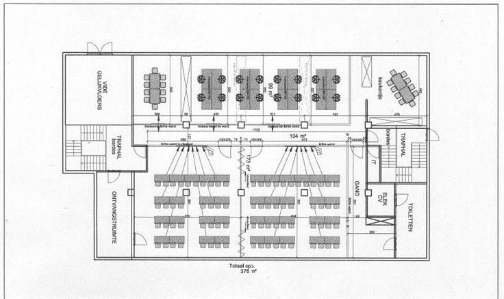 Open landscape + aparte ruimtes + vergaderzalen + kitchenette.