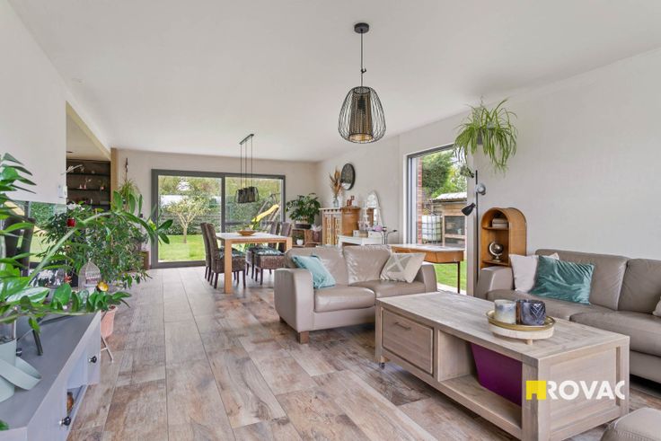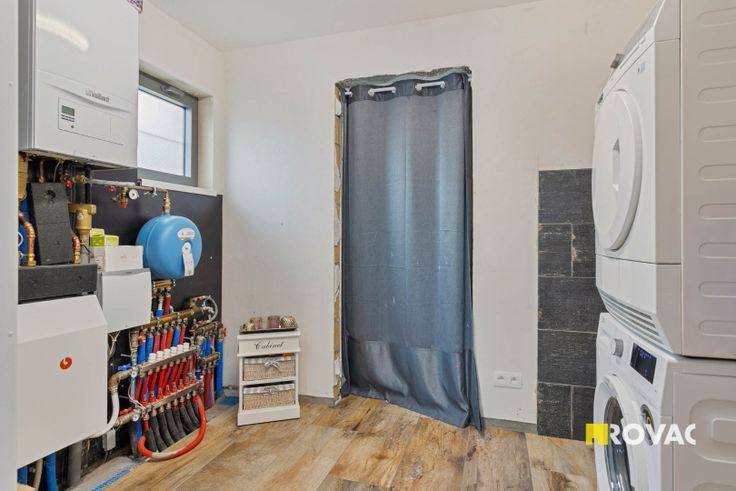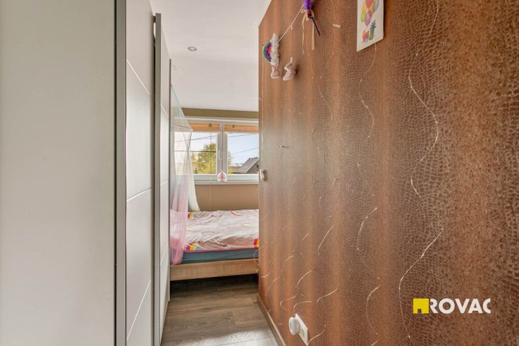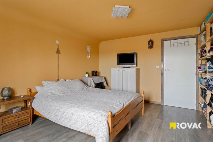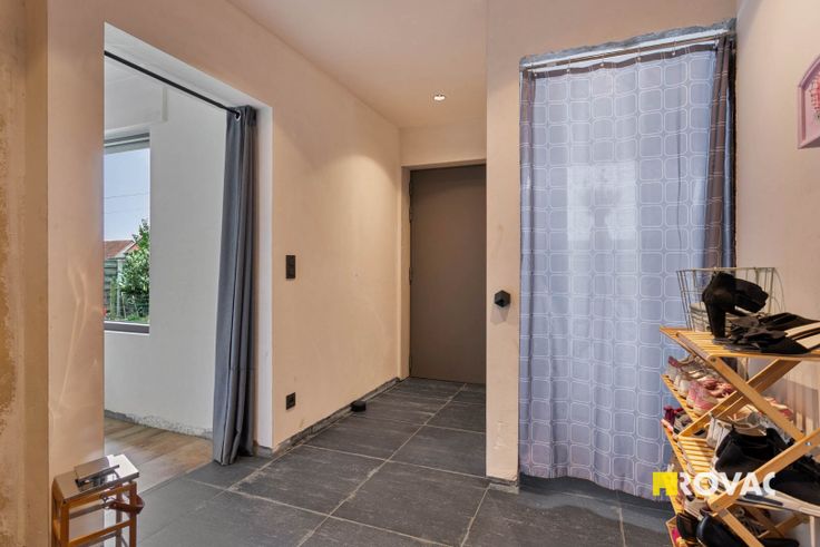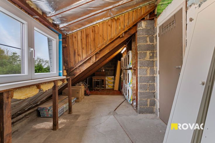 Indeling: inkomhal, leefruimte, eetplaats, keuken, bergruimte, badkamer met toilet, apart toilet, 2 slaapkamers, extra kamer en zolderruimte.