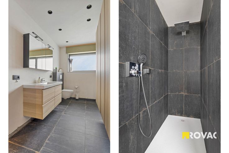 De woning werd beneden reeds grotendeels vernieuwd: zo werden er nieuwe vloeren (en vloerverwarming) voorzien, domotica, ramen werden vernieuwd, keuken en badkamer werden vernieuwd en er werd ook een kleine uitbouw voorzien. Bovendien werd er ook een regenput van 10.000 liter toegevoegd.