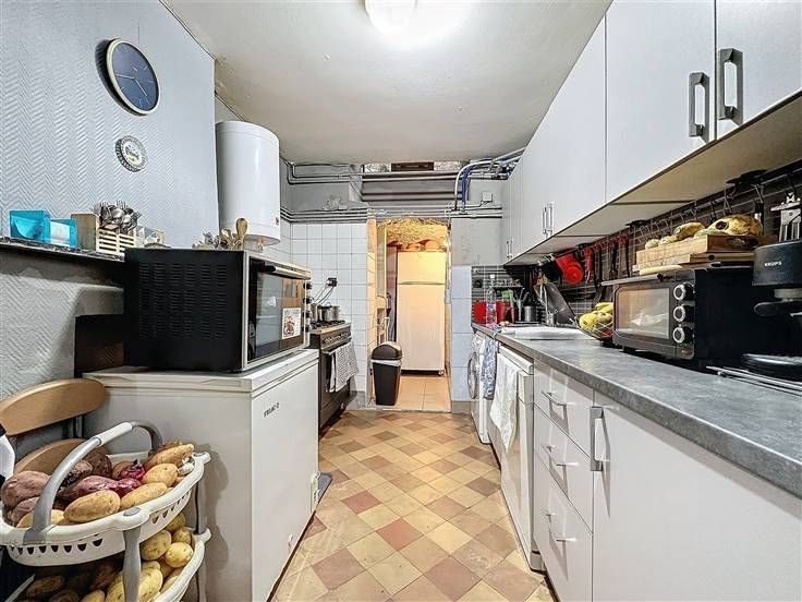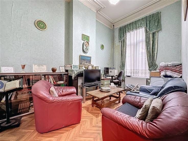 Vlakbij het Armand Steurs Plein - In een rustige woonstraat - Mooi 5-slaapkamer huis van +/- 150m² als volgt samengesteld: Op het gelijkvloers: een inkomhal, twee slaapkamers van +/- 13,5m² en 12m², een douchekamer met toilet en een kleine binnenplaats achteraan. Op de benedenverdieping: een hal, een keuken van +/- 13m² die uitgeeft op een woon/eetkamer, een doucheruimte met toilet en een berging. Op de eerste verdieping: een woonkamer van ongeveer 20 m² en een slaapkamer van ongeveer 12,5 m². 2e verdieping: twee slaapkamers van ca. 17,5m² en 12,5m². Apparatuur en comfort: dubbele en enkele beglazing, EPB G, niet-conforme elektriciteit - Beschikbaar op basis van erfpacht