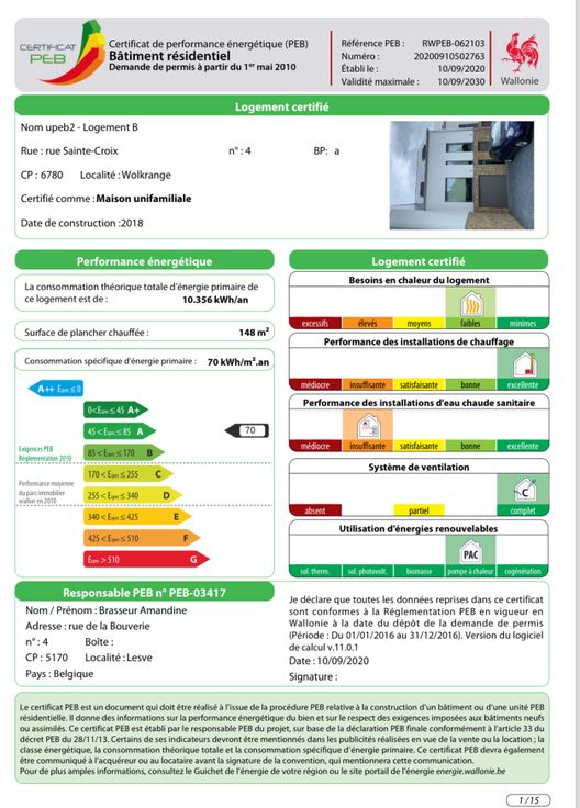 La maison est équipée de triple vitrage, superficie environ de 250m2 brut , chauffage par le sol, pompe à chaleur, récupération d'eau de pluie.
