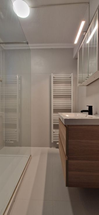 Badkamer: Moderne badkamer met inloopdouche en wasmeubel