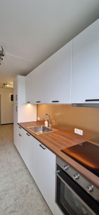 Keuken: Volledig uitgeruste keuken met hete luchtoven, inductie kookplaat, spoelbak, koelkast met vriesvak en dampkap