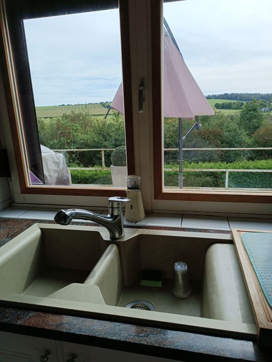 Maison 4 façades à 5670 Mazée (Viroinval) dans cadre bucolique avec vue à couper le souffle, au calme tout en étant proche de toutes commodités (7 km de la frontière française) : supermarché, pharmacie, centre médical (médecin, dentiste), piscine, pompe à essence, écoles, supérette, activités touristiques, ... composée d'une cave-garage-scellier, espace pour machine à laver, au rez : hall d'entrée, sdd neuve, wc séparé, meuble vasque, salon avec cheminée feu ouvert fonctionnelle et poêle à pellets, sàm, cuisine équipée (frigo, lave-vaisselle, four, hotte, taque électrique), à l'étage : hall, 3 chambres, bureau ou salle de jeux, grenier. Possibilité meublée (à convenir). Terrasse plein sud, 30 ares de terrain (arboré, paysagé, pelouse).Chauffage central au gaz (citerne), poêle à pellets, nouvelle chaudière, compteur bi-horaire, châssis triple vitrage, volets manuels à toutes les fenêtres, vélux dans les chambres, portail, parking 4 voitures, jouissance d'une parcelle de terrain en face de la maison assurant toute quiétude. Animaux admis. Hors domaine, hors co-propriété, sans vis à vis, un seul voisin calme. Pour résidence principale ou secondaire. Disponible 15/06/2025. 1100€/mois. 2 mois de garantie locative. PEB en cours. 1ères visites sur rdv le 03/05/25 de 14 à 17h. Contact par email avec description de votre profil : locationmazee@hotmail.com