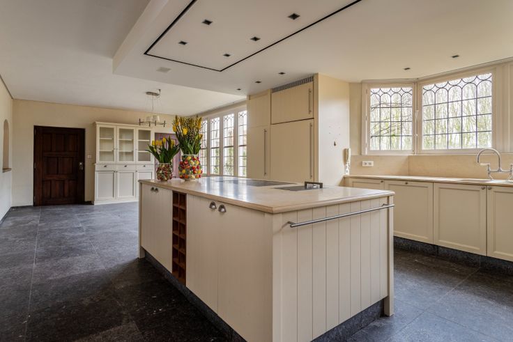 LANDHUIS BREYDA BLICK Reeds sinds de oprichting van ons kantoor, langs de Esenweg 197, kijken we uit op één van de meest unieke eigendommen die ons dorp rijk is. Landhuis 'Breyda Blick' (Oudnederlands voor 'breed zicht'). Een ontwerp naar de hand van architect 'Arthur De Geyter'. We zijn dan ook bijzonder trots u deze verborgen parel te mogen aanbieden op de vastgoedmarkt. Het landgoed strekt zich uit over een totaaloppervlakte van maar liefst 1,10ha. Aan straatzijde beschikt het eigendom over een site van ongeveer 4.000m² projectgrond. momenteel aangepland met volwassen platanen (3 rijen). De oprijlaan in bruine kasseien (kletsekoppen: ca. 350 jaar oud en afkomstig van de oude baan uit Boezinge) voorzien van smeedijzeren hek (met camerabewaking) brengen u doorheen een rij platanen tot op het binnenplein voor het landgoed. De woning is royaal opgetrokken in handvorm gevelstenen en afgewerkt met bourgondisch witsteen (ancien hand gekapt door de beroemde steenkapper Ramon – Brugge). Het schrijnwerk is in Meranti en vervaardigd door aannemer Verstraete Bouw uit Roeselare. De oude Normandische dakpannen en de bijzondere binnenkoer die de linker- en rechtervleugel met elkaar verbinden zorgen voor een bijzonder gevoel.  De rechterflank herbergt een bureauruimte met aansluitend een driedubbele garage. De linkerflank, het woongedeelte, is royaal ingedeeld met een prachtige inkomhal, vestiaire, luxueuze sanitaire ruimte, om vervolgens de enorme leefkeuken t... Renovatieplicht: nee