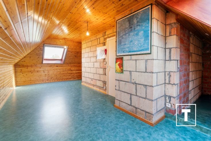 Indeling: inkomhal, toilet, ruime woonkamer, keuken met toegang tot de kelder, 3 slaapkamers, badkamer met bad/douche en een grote zolderruimte.