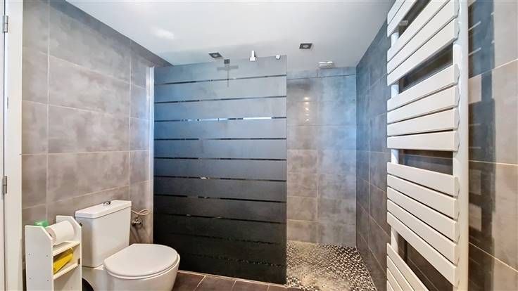 Comprend au rez de chaussée : spacieux hall d'entrée, chambre (ou bureau), grand séjour avec cuisine équipée, salle de douches (avec wc).