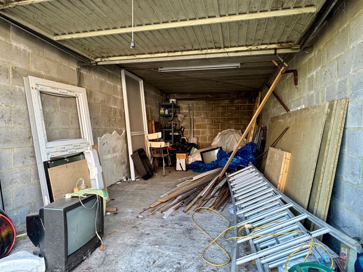 Au niveau de la rue : 4 garages 1 voiture avec portes manuelles (2 indépendants et 2 communicants), les 4 sont d’une superficie de 20m² chacun. Un garage est traversant pour donner accès au jardin.