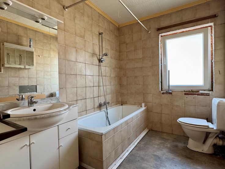 Bonne maison 3 façades de 75m² nets habitables avec 2 chambres, terrasse, jardin et 4 garages 1v, le tout sur une propriété de 3 ares et 60 centiares. Située dans une rue calme à 1 min du centre de Fraire.