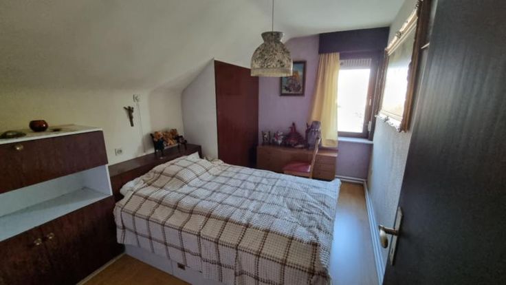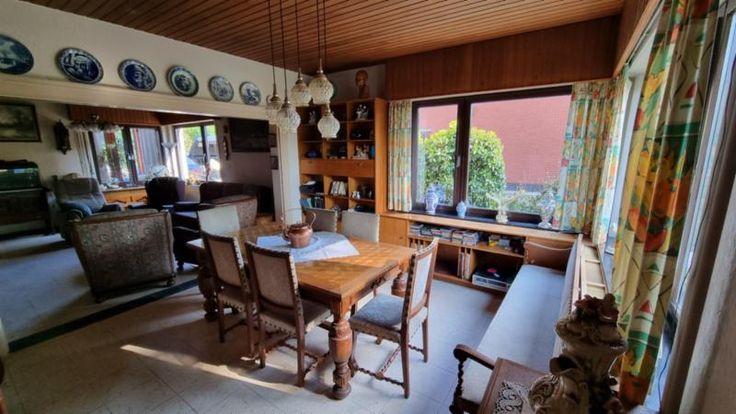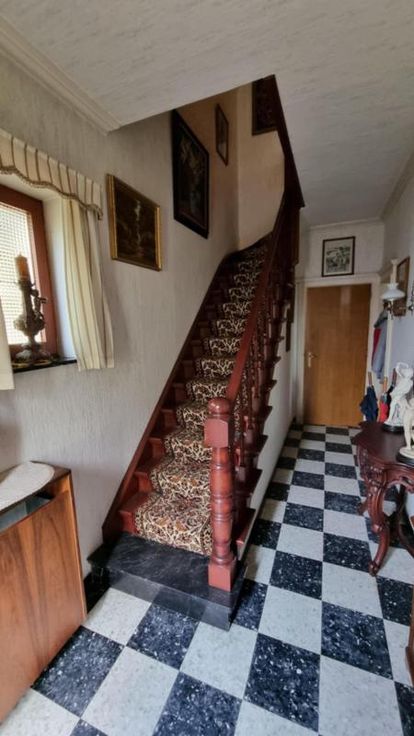 Deze eengezinswoning in open bebouwing omvat: Kleine kelder onder de inkomhal; Gelijkvloers: Inkom- en traphal, woonkamer, ingerichte keuken, sas, apart toilet en berging; 1ste verdieping: Nachthal, badkamer met zitbad, lavabo en toilet, en 3 slaapkamers; 2de verdieping: Zolderruimte in de nok van het dak; toegankelijk via uitschuiftrap Grote garage aan de woning achteraan aangebouwd Veranda en afdak Verschillende houten tuinbergingen achteraan het perceel G score: A P score: A