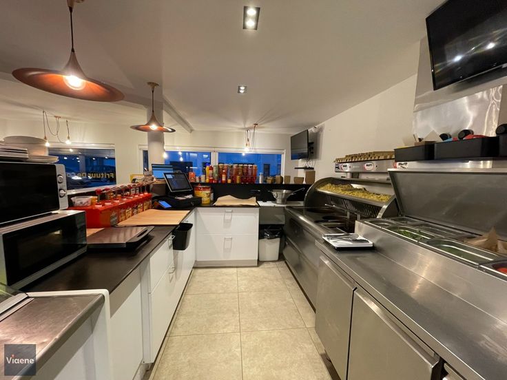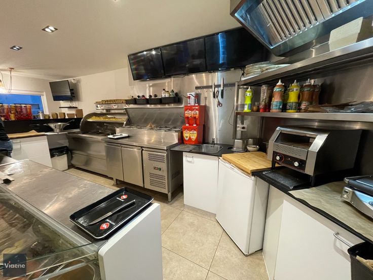 Instapklare Horecapand in een opvallend hoekgebouw aan de stadsrand van Oostende - gelegen op een volledig vernieuwde drukke doorgangsweg met veel passage - commerciële ligging in een woonkern nabij enkele scholen - de verkoop omvat het handelsgelijkvloers mét garage, inclusief de volledige inrichting én de uitbating, waardoor je direct kunt starten met de zaak zonder verdere investeringen - het pand werd volledig gerenoveerd en ingericht als horecazaak voor een hedendaags fastfood concept en is instapklaar - modern ingerichte handelsruimte 120 m² met automatische deur op de hoek en grote ramen met veel visibiliteit - professioneel ingerichte toog met professionele materialen zoals de frigotoonbank, perfecta friteuse met 3 potten, hamburgergrill op aardgas, bicky toaster, saladbar met frigo, diepvriezer vetafvoersysteem met filtersysteem - afzonderlijke keuken met afwasruimte - zeer ruime berging - garage met achteruitgang en automatische poort - 2e ingang via de gemene delen van het gebouw - vrij bij akte en klaar voor een vlotte en onmiddellijke uitbating