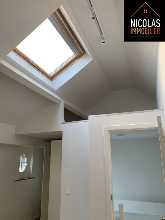 D’un appartement/duplex aux 1er et 2e étages : séjour lumineux avec cuisine équipée ouverte, une chambre spacieuse et une salle de douche moderne