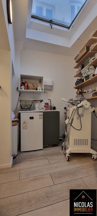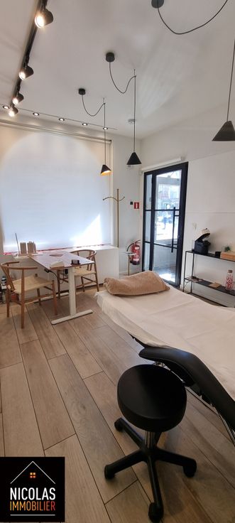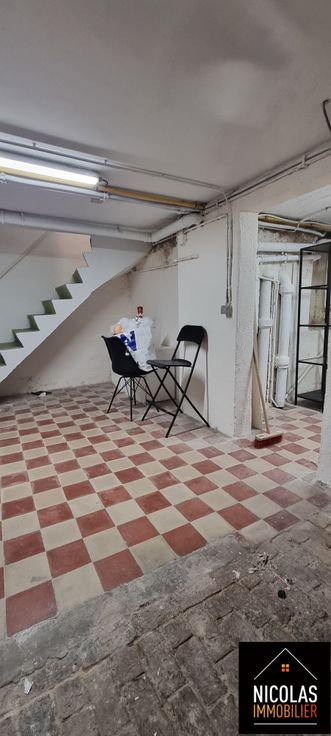 D’un rez-de-chaussée commercial : espace principal, pièce arrière, WC, avec accès direct aux caves en sous-sol (réservées au commerce)