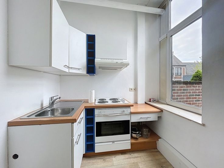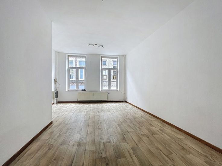Appartement/studio situé au 2e étage d'un immeuble sans ascenseur comprenant une belle pièce de vie (salon, salle à manger et chambre), une salle de douche avec WC et lavabo et une cuisine équipée (frigo, congélateur, taques électriques, hotte, four, évier et armoires). Chauffage collectif au gaz de ville, châssis double vitrage PVC, PEB "D" 323kWh/m².an.Très lumineux, situé dans une rue piétonne en plein centre ville. Loyer 525€/mois + 75€/mois charges (chauffage et eau compris). Libre immédiatement. 2 mois de caution. Plus d'infos www.trevirasquain.be ou au 085/25.39.03
