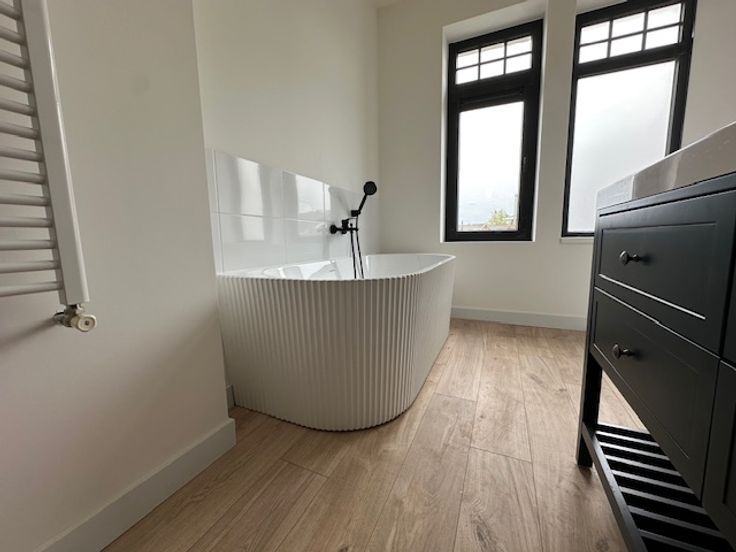 • Moderne badkamer met ligbad, inloopdouche en toilet