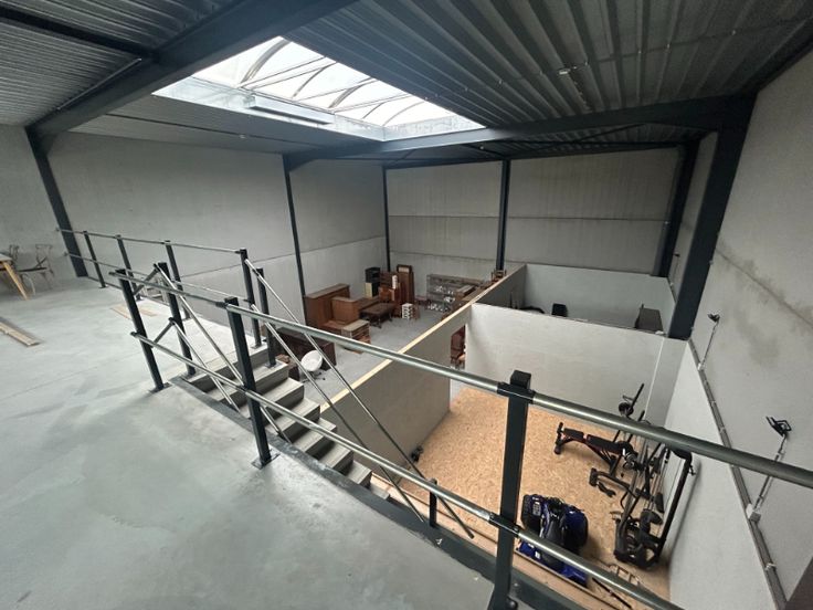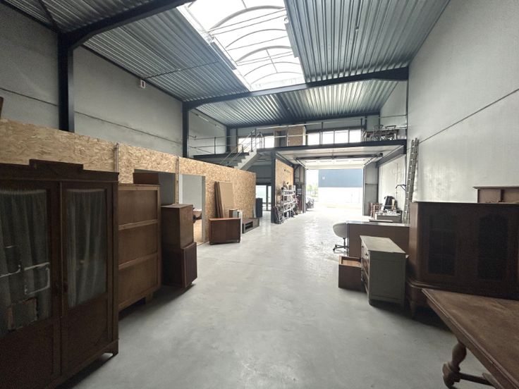 De afwerking omvat onder andere een geïsoleerd steeldeck dak, gepolierde betonvloer, lichtstraat voor natuurlijk daglicht, een sectionale poort (3,35 m hoog) én een aparte toegangsdeur. De vrije hoogte bedraagt circa 7 meter, wat zorgt voor een optimale benutting van de ruimte.