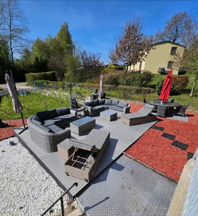 COMPRENANT : AU SOUS-SOL : trois garages, un hall, deux caves, une chaufferie, deux ateliers et une remise. AU REZ-DE-CHAUSSEE : hall d’entrée avec espace dressing et escalier donnant sur la partie gauche de l’étage, une cuisine équipée avec coin à manger, séjour et salon avec poêle à bois biomasses de marque Tulikivi et escalier en colimaçon desservant la partie droite du premier étage, trois chambres, 2 salles de douches, WC. AU 1 ER ETAGE : partie droite : hall de nuit avec espace bureau, deux chambres Partie gauche : palier avec WC, une cuisine et un séjour. Châssis bois double vitrage. Chauffage central au pellets (chaudière Biomasses). Electricité conforme – 42 panneaux photovoltaïques. Vaste jardin avec grande terrasse et remises en une superficie de 53 a 96ca Proximité des grands axes, des écoles et commerces. Contenance totale de 1ha 26 a 13ca - R.C : 1236 euros PEB N° 2024329004790 – Classe B 2 destinations possibles pour ce bien : - vaste maison d’habitation - possibilité de créer 2 logements distincts moyennant permis d’urbanisme préalable. Possibilité d’acquérir deux terrains à bâtir – pour lesdits terrains, priorité sera donnée aux acquéreurs de la maison