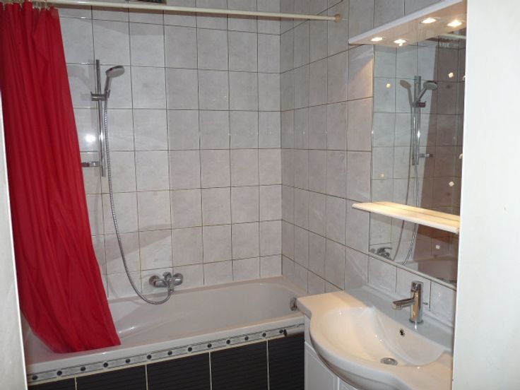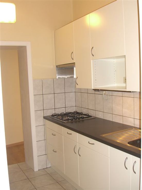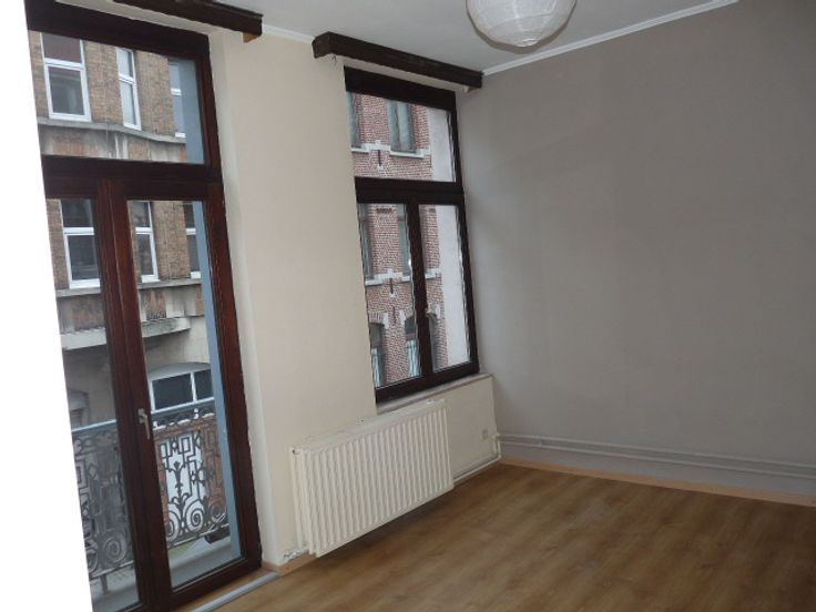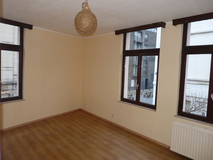 Appartement d'angle 1er étage, impeccable avec salon et chambre indépendante, très clair, cuisine aménagée, double vitrage, chauffage central indépendant à condensation. Branchement machine à laver. 840€ +18€ de charges tel 0473-813-875. 2 mois de garantie locative .Bail de 3 ans