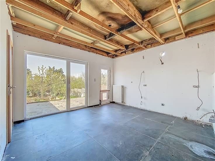 au rez: hall d'entrée, grand living, cuisine, WC séparé, salle de bains, buanderie/réserve.