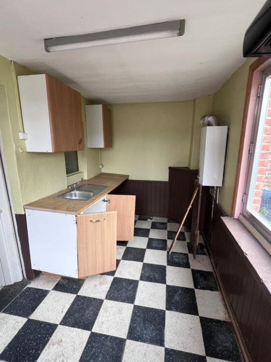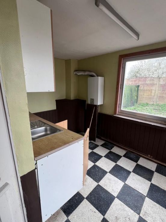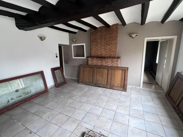 Maison d’habitation, actuellement uniquement aménagée en plein pied, comprenant : RDC : Salon, salle à manger, cuisine non équipée, salle de bains, buanderie, chambre, très grand garage Etage : grand espace à aménager Extérieurs : terrasse et jardin à l’arrière, espace jardin à l’avant pouvant être aménagé en parking pour plusieurs véhicules Châssis SV Pas de chauffage central