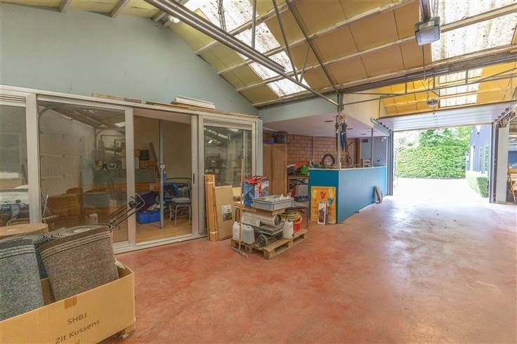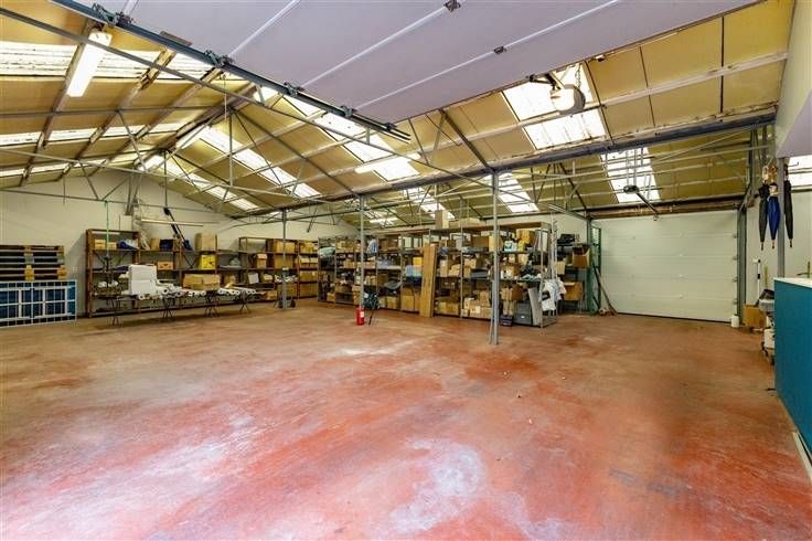 De woonst is gelegen op een perceel van 959m² die door middel van de zijdelingse oprit toegang geeft naar het magazijn van 312m² en een grond van 797m².