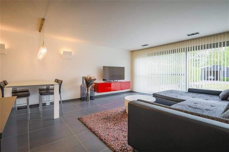 Het gelijkvloers appartement (102m²) betreden we via de inkomhal voorzien van ingemaakte kasten en vervolgens komen we in de woonkamer met volledig ingerichte open keuken en berging. Dit alles heeft zicht op de prachtige tuin met aangelegd terras.