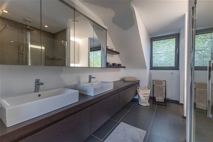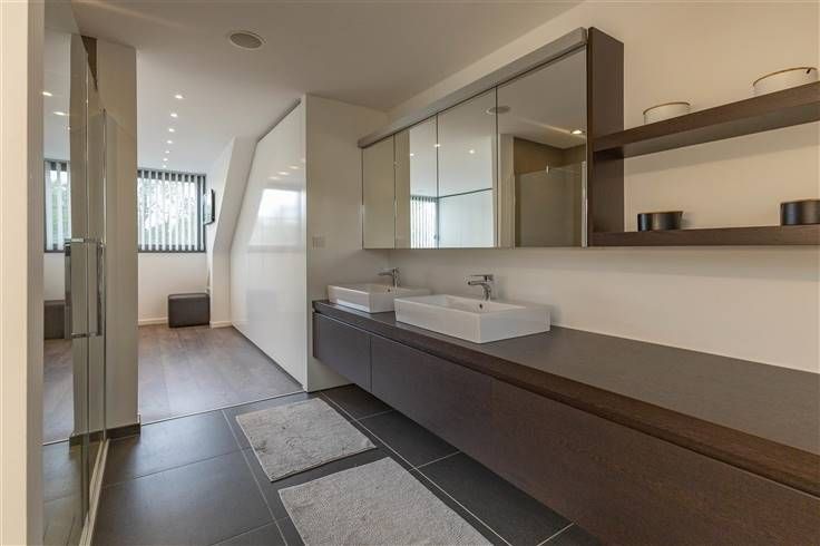 Vervolgens nemen we de trap naar de tweede verdieping voorzien van twee ruime slaapkamers (15m² en 12m²), prachtig ingerichte badkamer met grote inloopdouche, badkamer meubel met dubbele lavabo en een