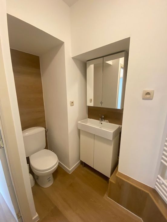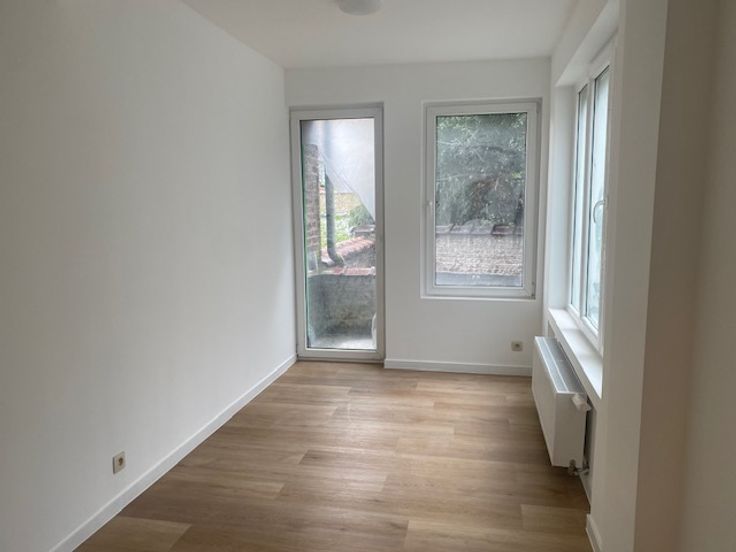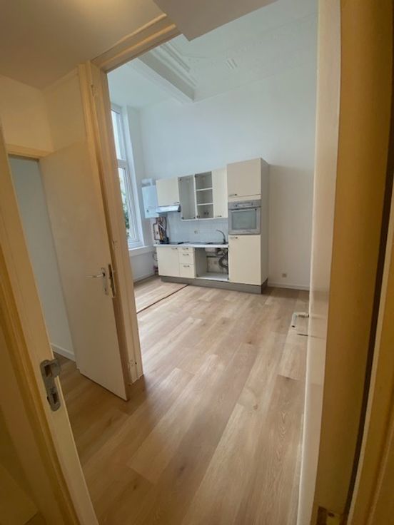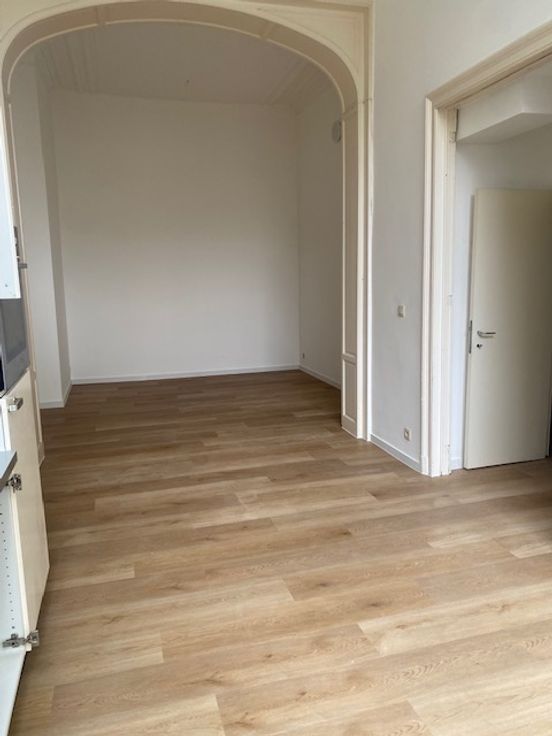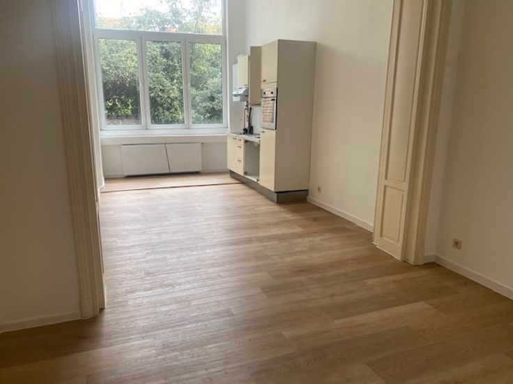 A deux pas de la Place du Châtelain, dans un petit immeuble, appartement rénové à louer. Très haut plafond, parquet, moulures, salle de douche avec wc et branchement pour machine à laver. Au calme. Bail société possible. Visites et infos avec propriétaire : 0477/202828