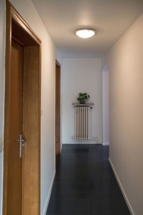 Bij het betreden van het appartement kom je in een brede inkomhal die toegang geeft tot alle ruimtes. De gezellige leefruimte baadt in het licht dankzij de grote ramen en biedt een charmant uitzicht op de rustige straat. Authentieke elementen zoals de sierhaard en de karaktervolle raampartijen geven het geheel extra charme en sfeer. Aansluitend vind je de volledig ingerichte keuken.