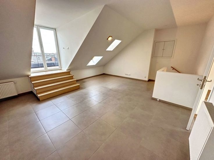 Cap Sud Namur biedt u dit prachtige duplex appartement met 1 slaapkamer van ongeveer 60 m² met een prachtig uitzicht op het Belfort, gelegen op de 3e verdieping van een volledig gerenoveerd gebouw dat zijn bewoners alle comfort en gemak biedt. Het bestaat uit: inkomhal met wc, superuitgeruste open keuken, woonkamer, 1 slaapkamer, badkamer, bijkeuken, terras, mogelijkheid om kelder te huren (€30). Parketvloer in woonkamer en slaapkamer. Dubbele beglazing. Dicht bij openbaar vervoer en winkels. PEB C. Kosten 150€ (gemeenschappelijke, koud water, verzekering en beheerkosten). Beschikbaar: onmiddellijk Informatie en bezoek op 081/210.810