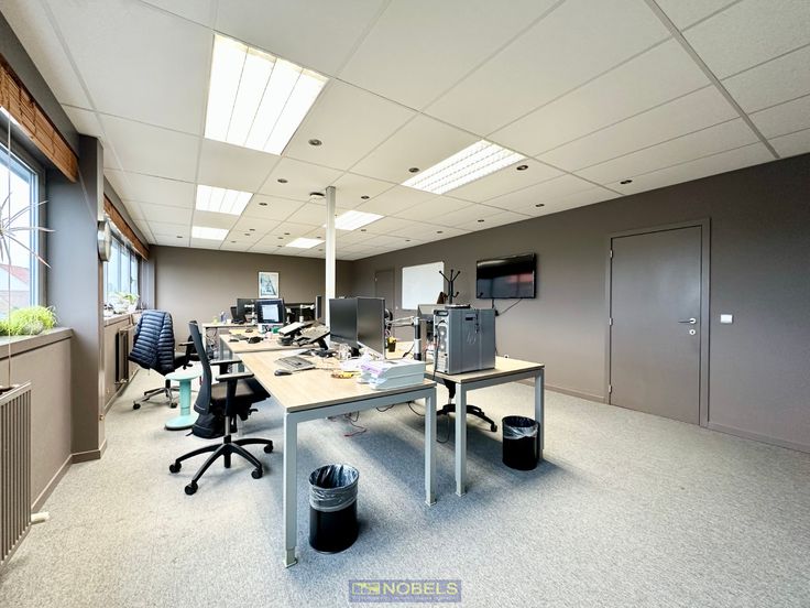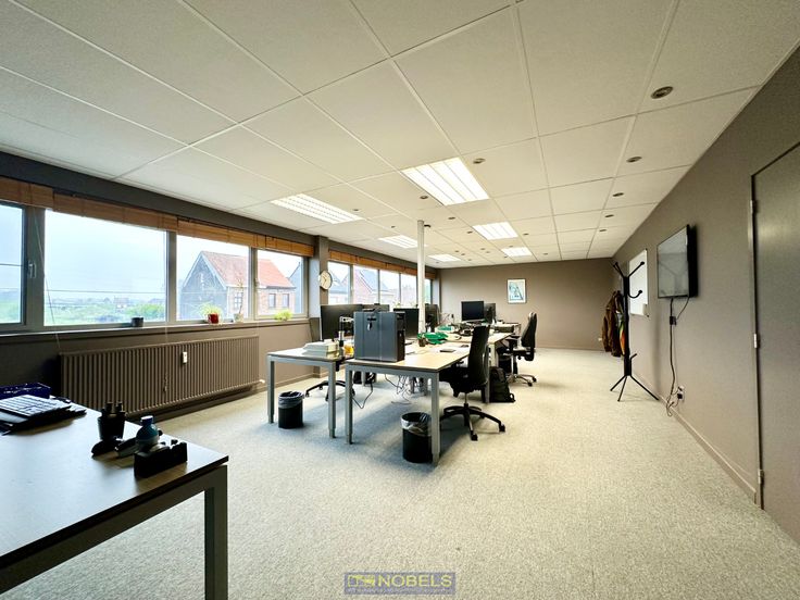 Indeling: inkomhal, 3 KANTOORRUIMTES met veel lichtinval (mogelijkheid tot 4de kantoorruimte) en 3 polyvalente ruimtes.