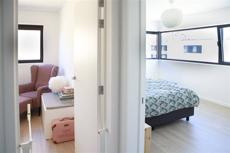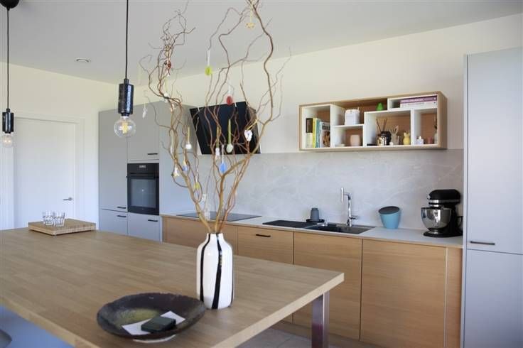 De mooi afgewerkte en lichtrijke woning omvat een living met bureau-hoek, een moderne open keuken met kookeiland, vier slaapkamers, twee aparte wc’s, een badkamer met zowel een bad als inloopdouche en veel bergruimte.